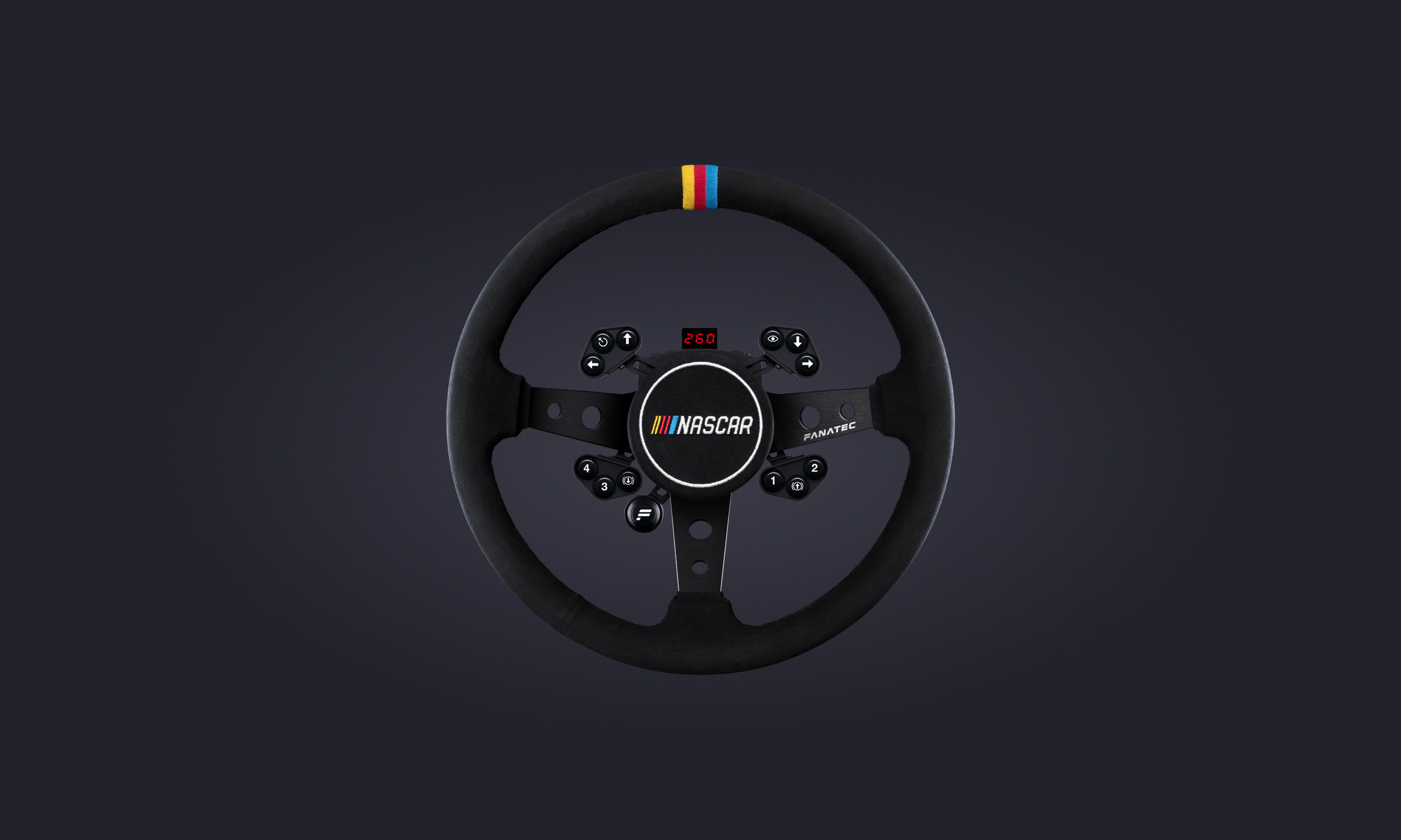 - Genuine Alcantara© hub cover with embroidered NASCAR logo