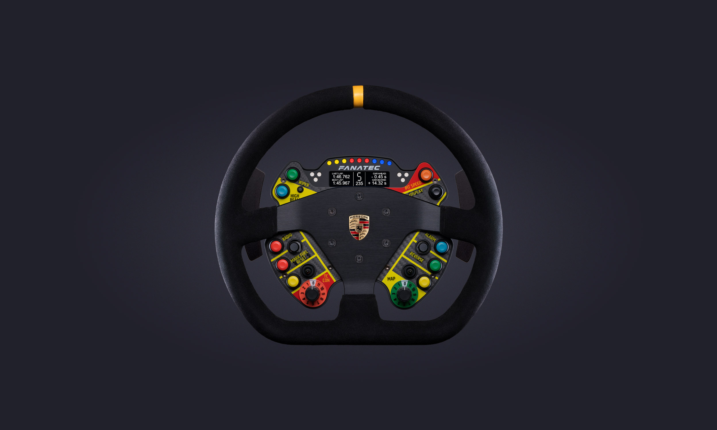 The ClubSport Steering Wheel Porsche 911 GT3 R is a full-scale replica of the Porsche 991 GT3 R wheel.