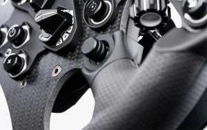 Retaining the shape of the iconic 270 mm ClubSport Formula wheel, the Formula V2.5 uses a 5 mm-thick, solid carbon fibre front plate, aluminium shifter modules, and smooth perforated leather grips.